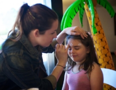 Kids can request “demon marks”, over-the-top colorful makeup, or even a derpy tiger–all of which will glow under UV light.