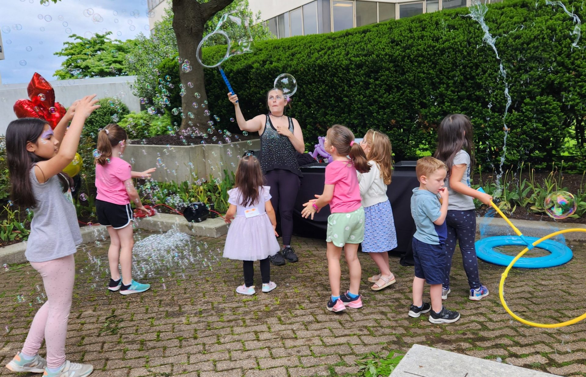 The kids are welcome to play with and explore the bubbles while the artist sits down for face painting, balloon twisting, or glitter tattoos.