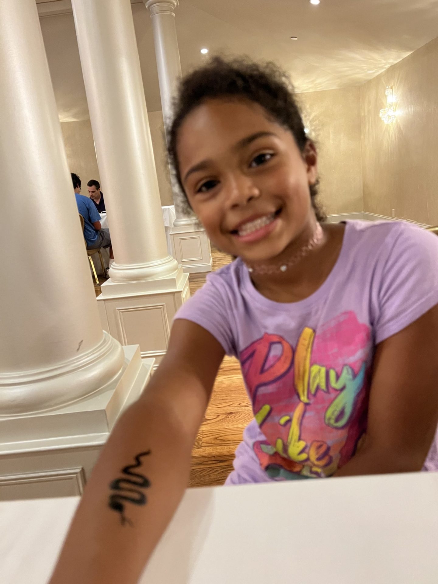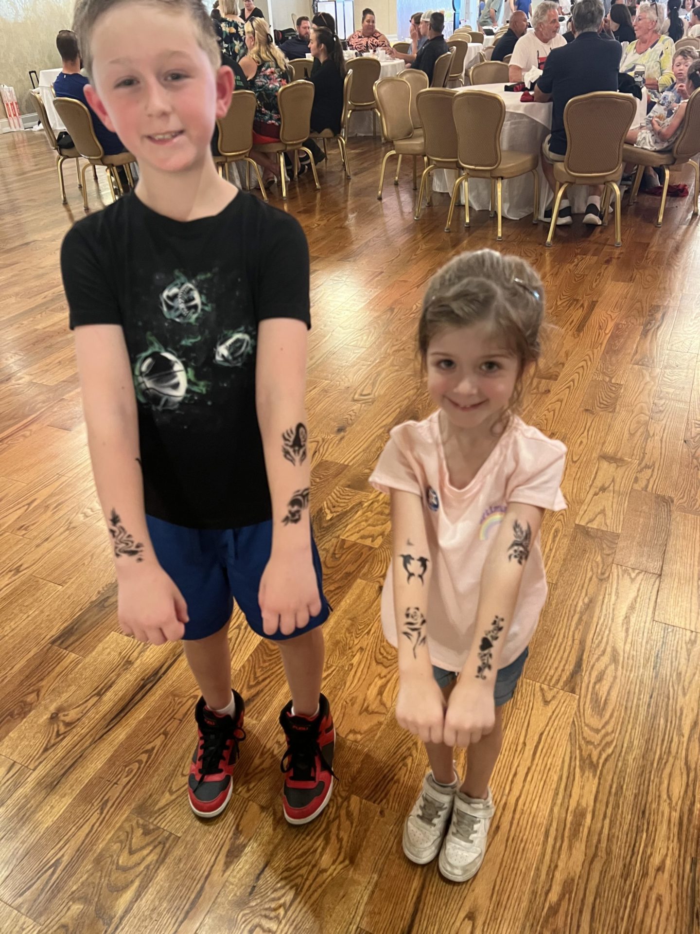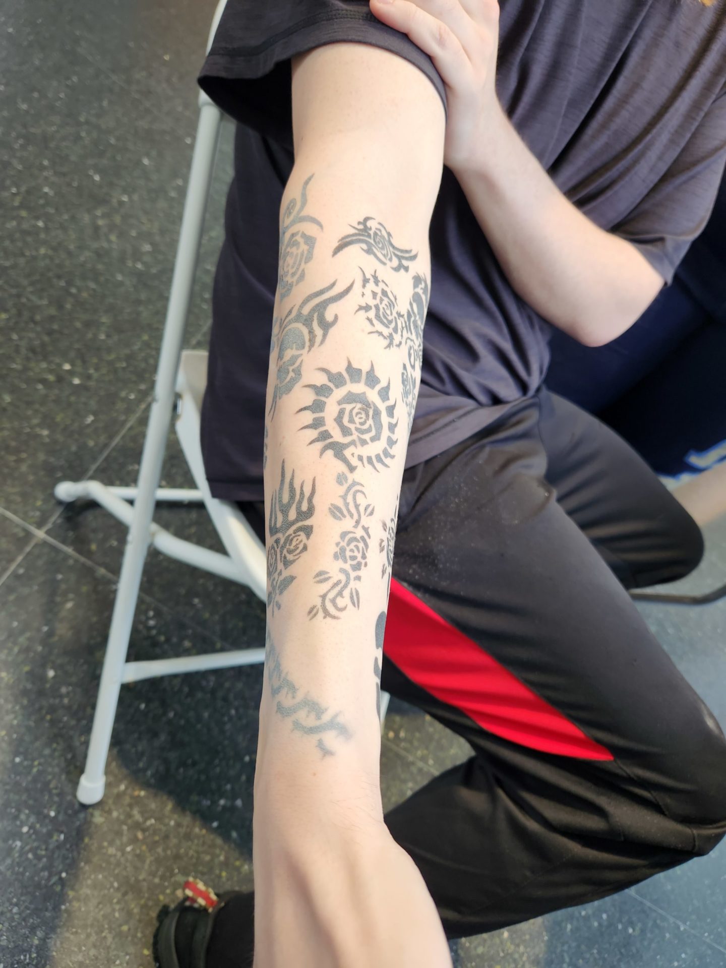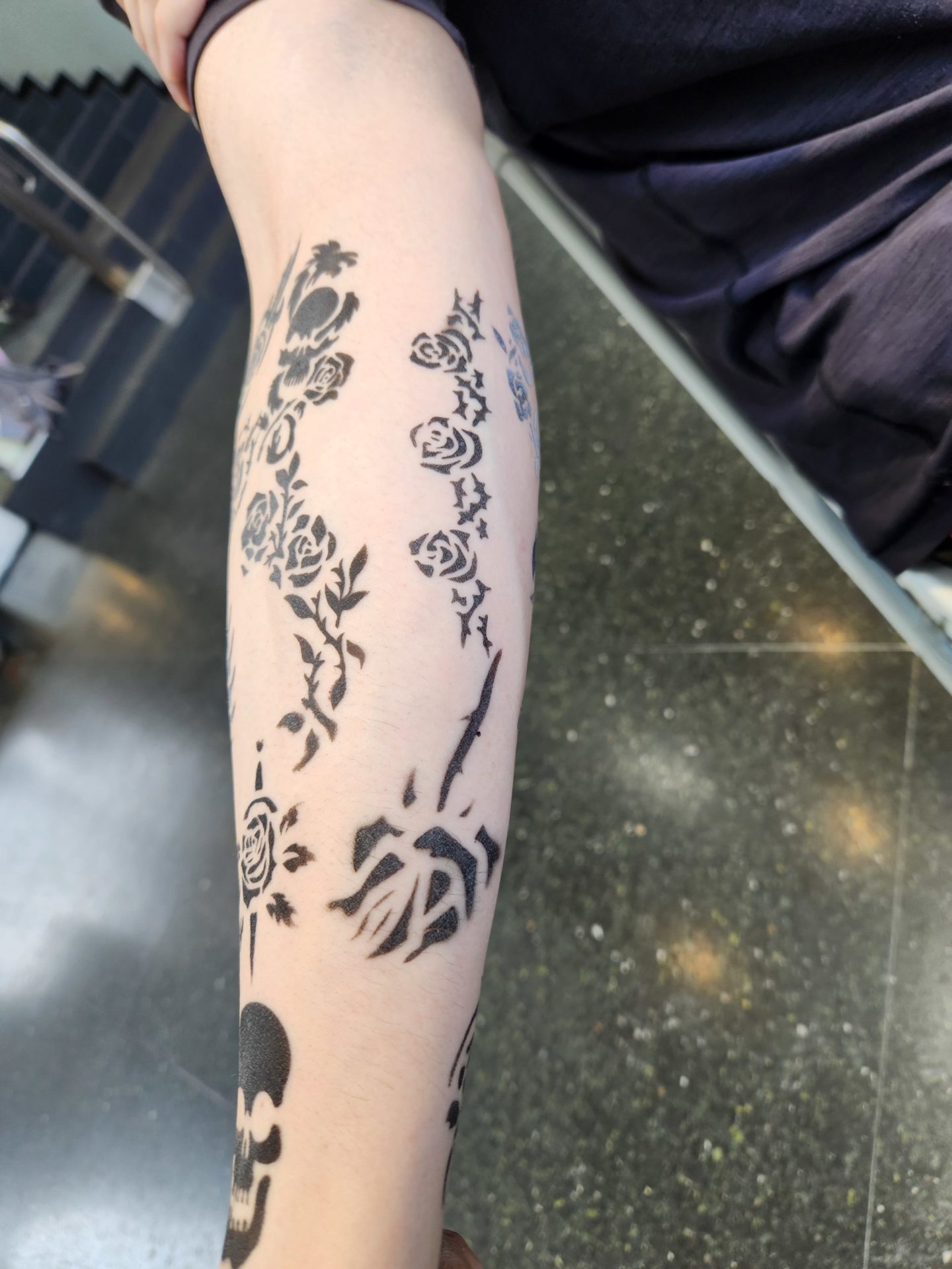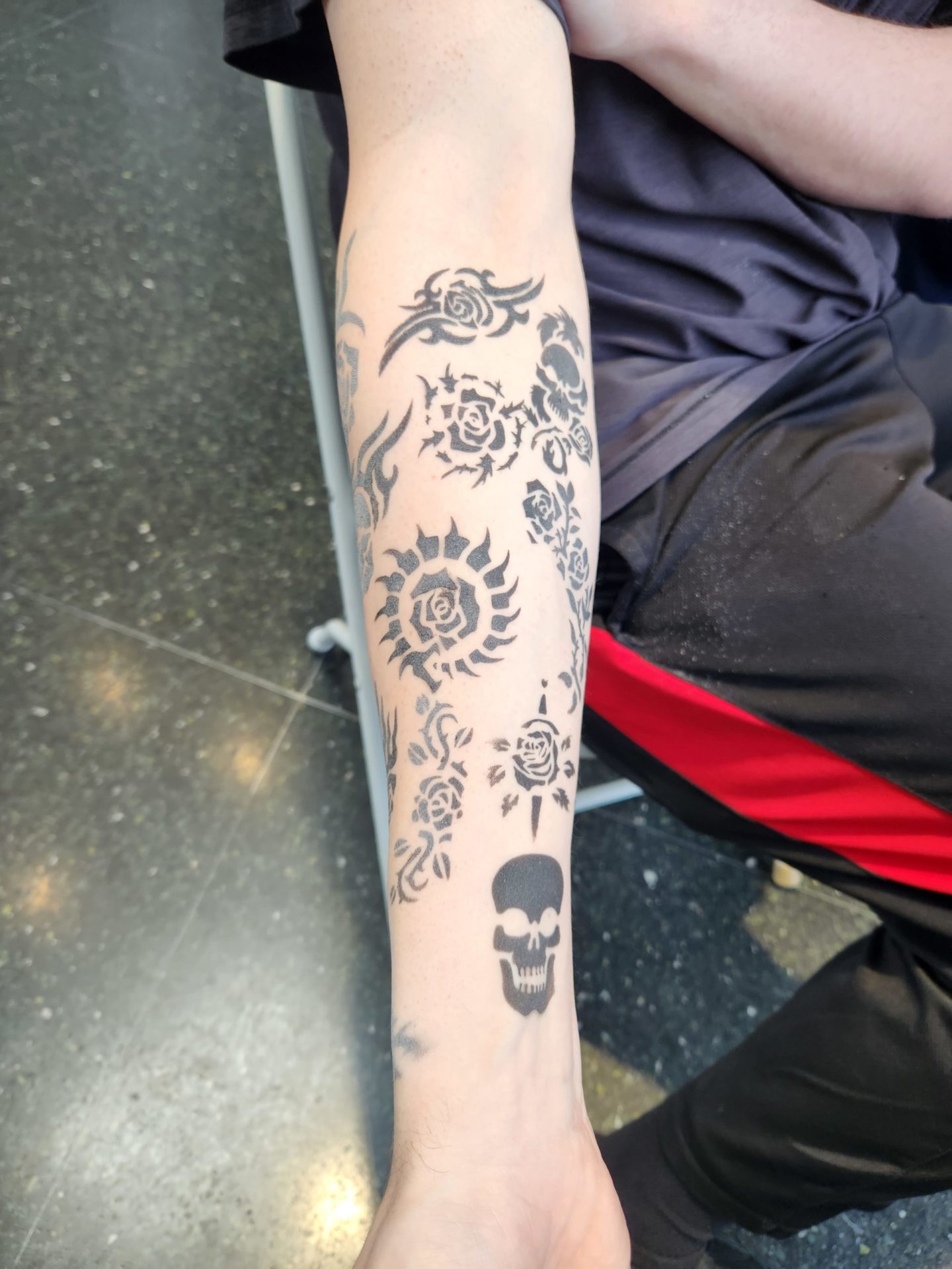 Airbrush tattoos are great for big audiences. These black tribal-looking designs are the closest to real tattoos you can get!