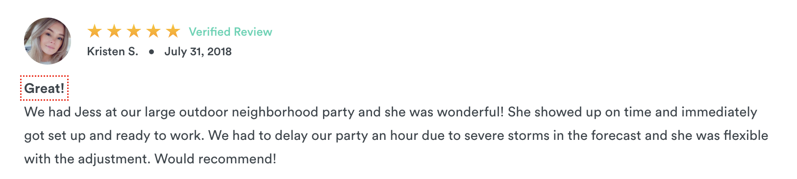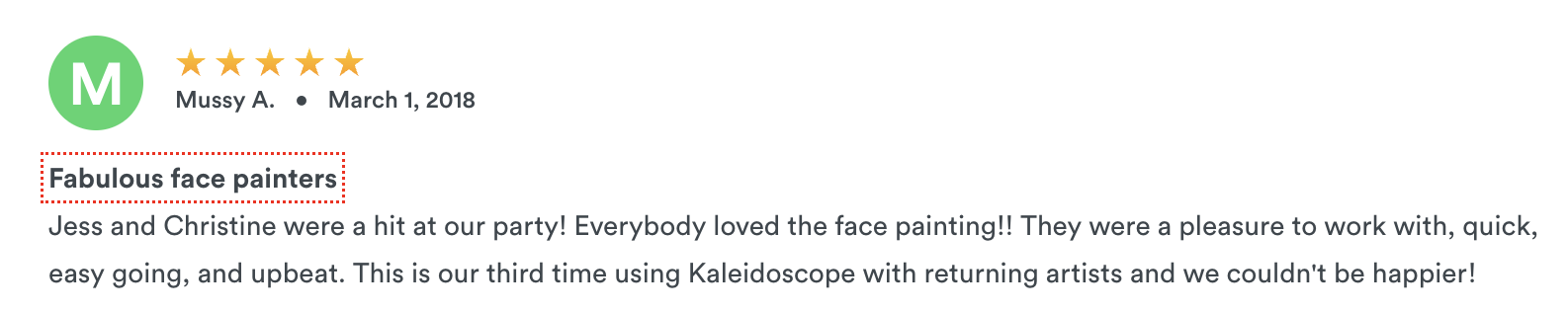 If you’ve spoken to us on the phone or via email, odds are you’ve spoken with Jessica G! Jessica is our resident customer-service-everything and works with all of our clients to book their parties and help with everything following up to their events. She’s also one of our favorite temporary tattoo artists!