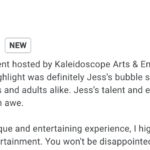 While her professional princessing has taken a back seat to her role in Kaleidoscope’s office she’s still available as a temporary tattoo artist and bubble performances. She would love to be at your next event!