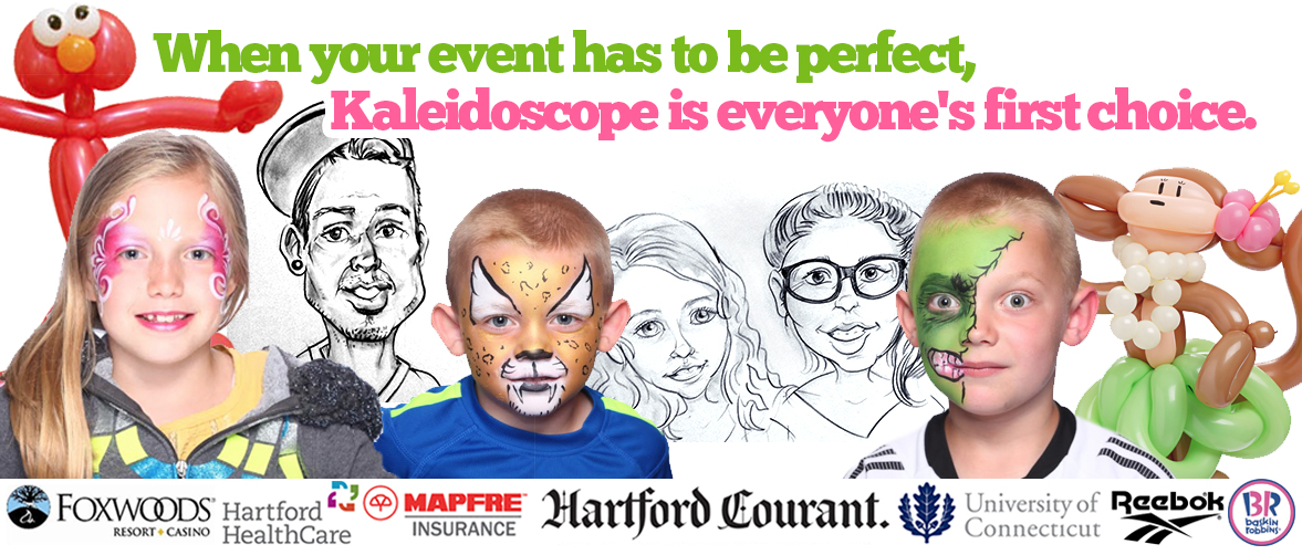 All of our artists are professionally trained to create fun, silly portraits of your guests. And to keep the lines moving quickly, all caricatures at Kaleidoscope are done in black marker without color and include just the guest’s head.