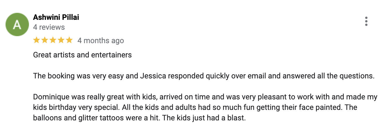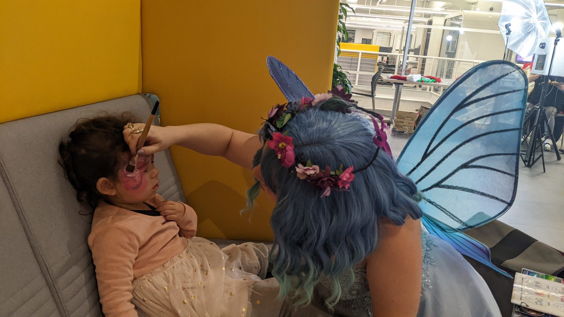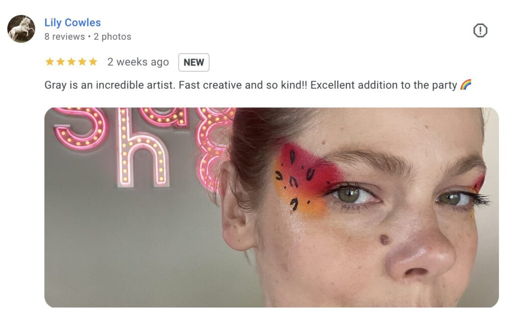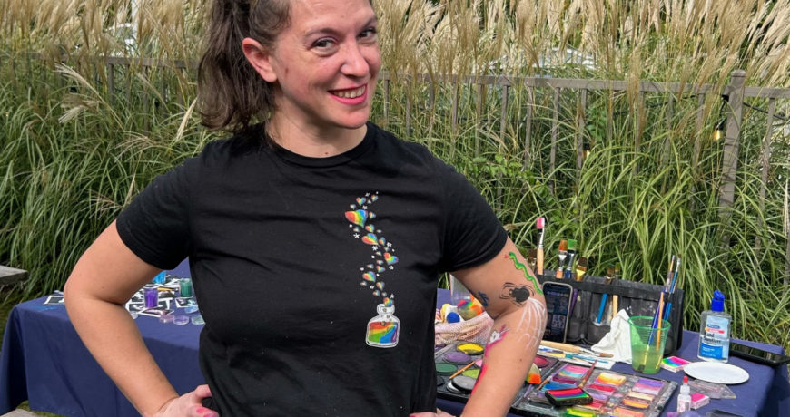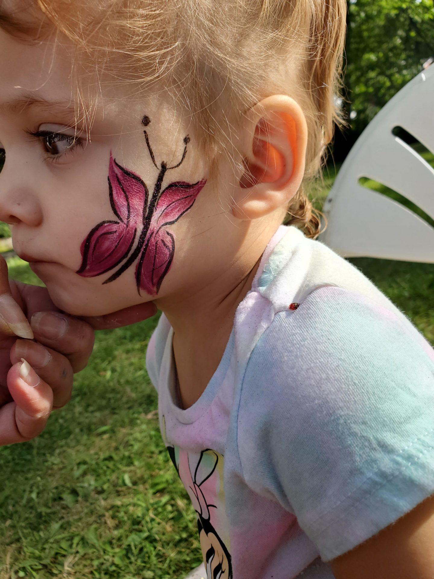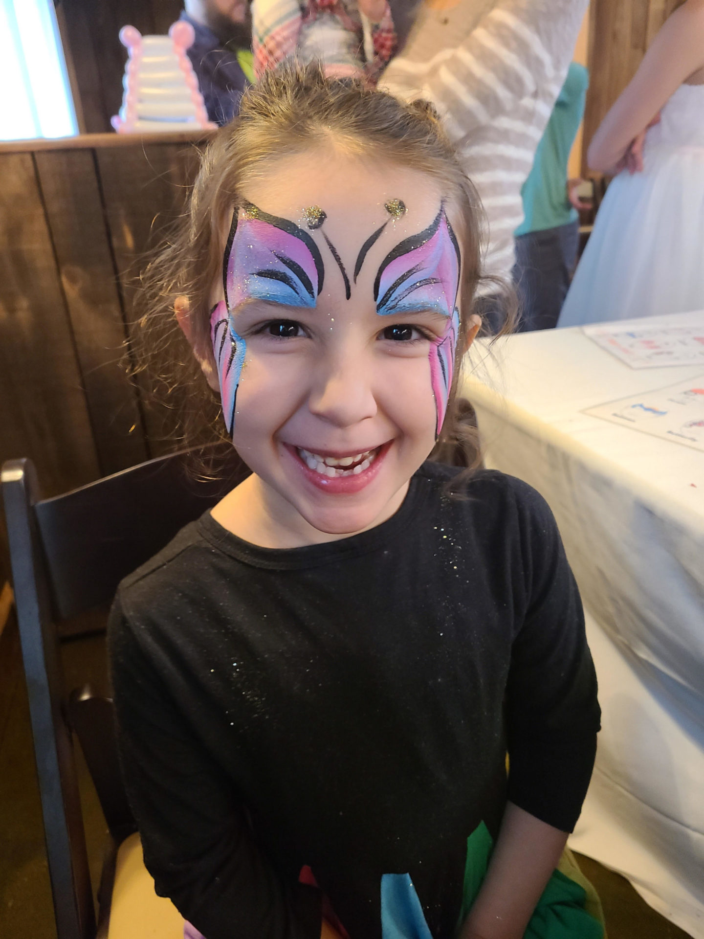 When someone’s face just breaks into a smile seeing their painted face! It gives me so much joy to bring others joy! The whimsical nature of it all just fills my cup and makes me excited for each and every gig. I also love dressing up colorfully! You’ll see me and my butterfly hair clips and cool earrings at every gig because I just love it so much!