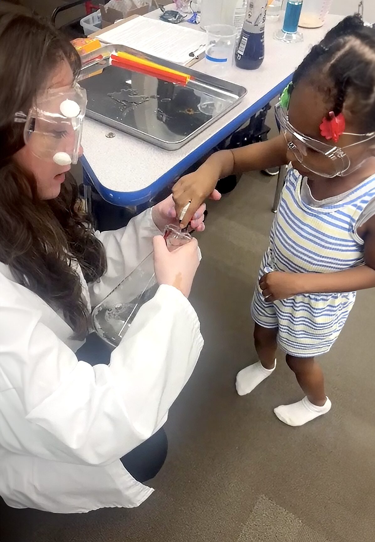 That said, our “lab partners” (kids in the audience) will always be given safety glasses to model lab safety, even if none of our experiments require them as a precaution.