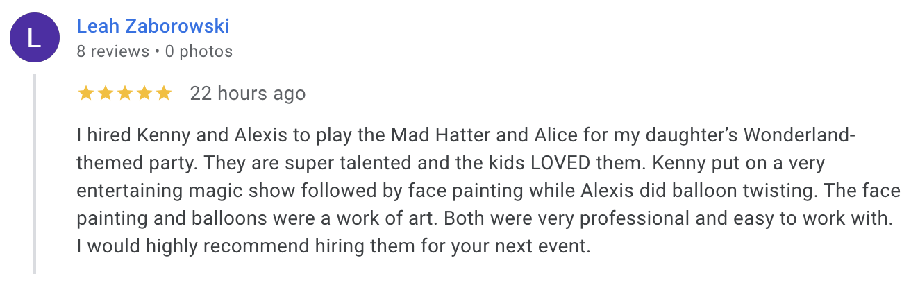 Whether you hire her as Oasis or Lexi, you can see Alexis’s verified Google reviews below: