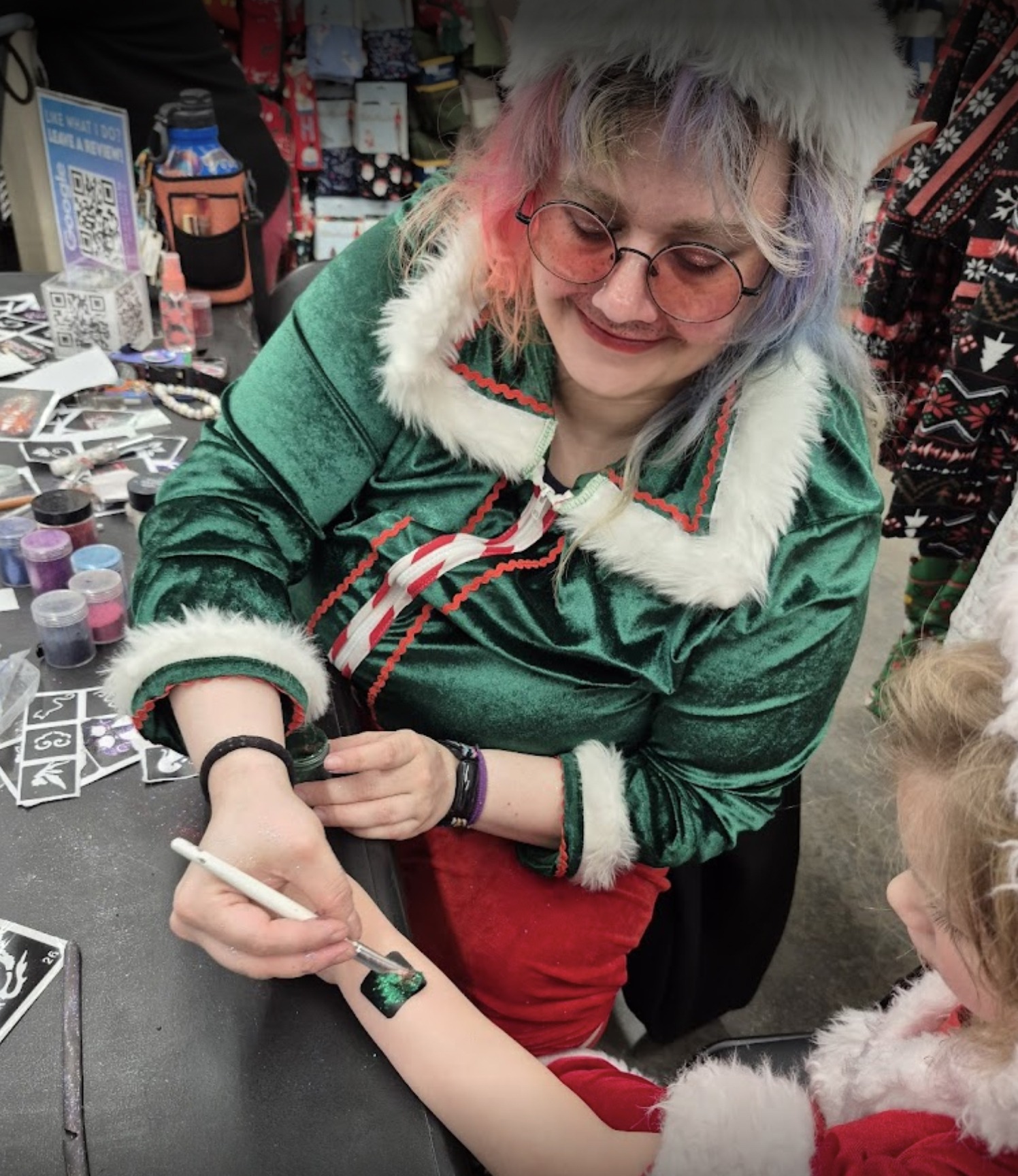 How they’re applied: Using FDA-approved adhesive, we use stencils and cosmetic glitter to apply bright and shiny designs along the hands or feet. Our setup is quick and small, and lots of fun to watch!