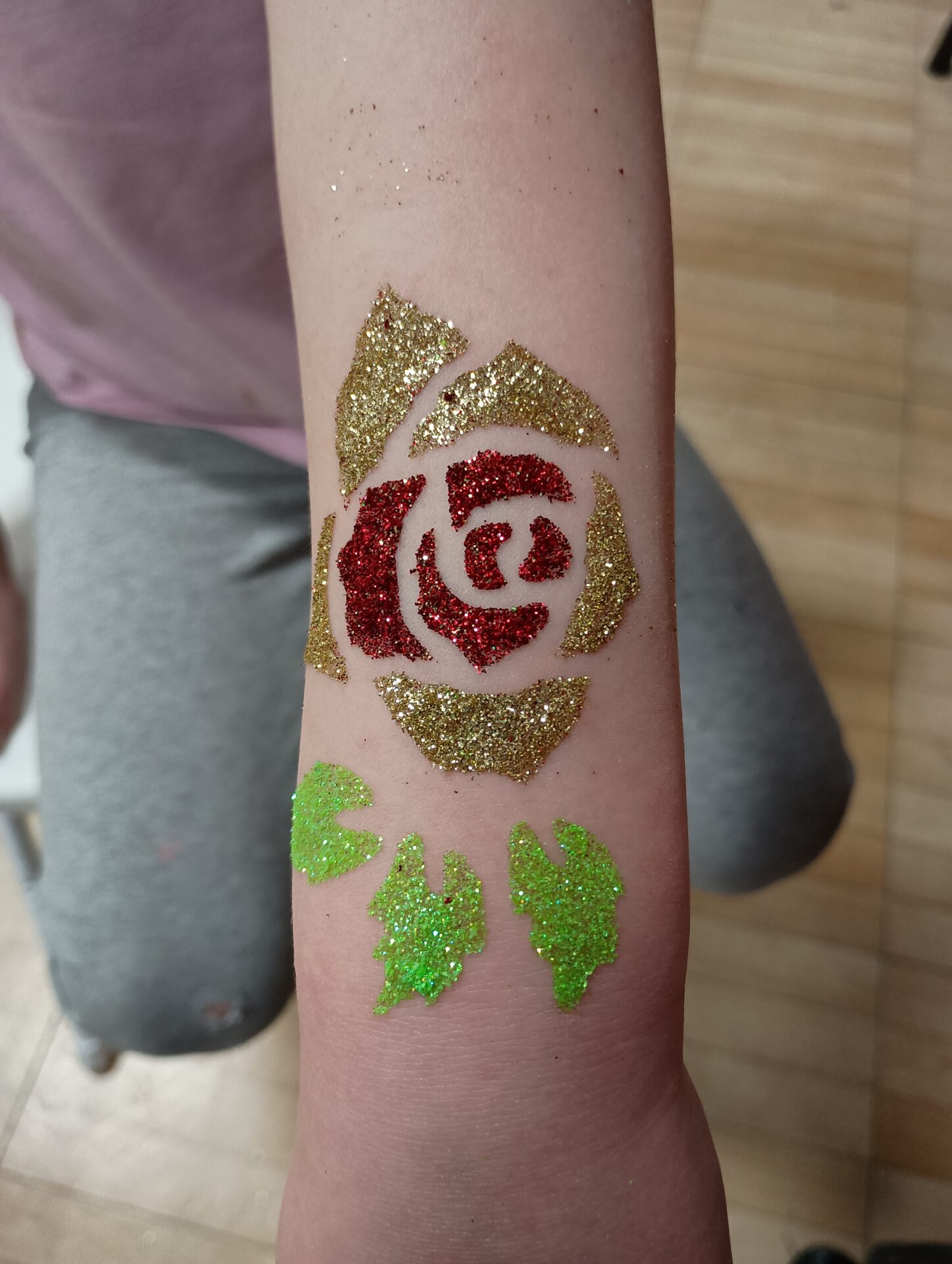 Best used for: Glitter tattoos are great for large events with lots of children to get through or as an add-on for face paint or balloon twisting packages. And yes, boys love them too!