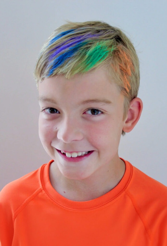 Hair art is the most popular thing we’ve seen so far at K-Pop Demon Hunters themed parties, and we think it couples perfectly with glitter looks or UV face paint (below).
