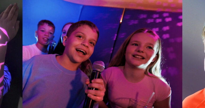 A kids’ karaoke station is our most underrated idea for a K-Pop Demon Hunters party. Depending on what your kids love, at the time of booking you can request your favorite mix of songs: