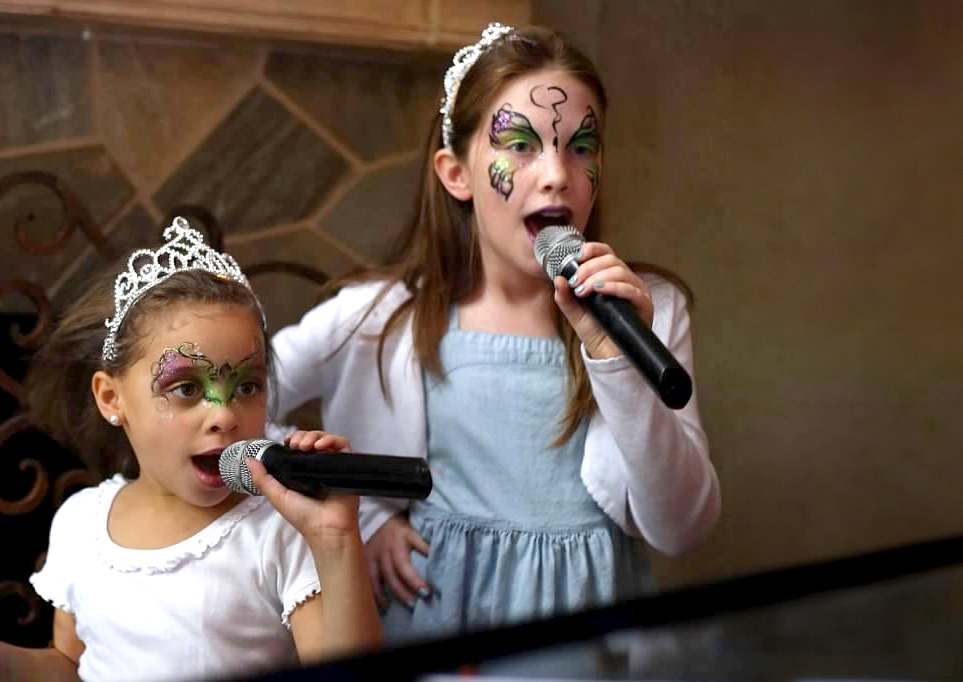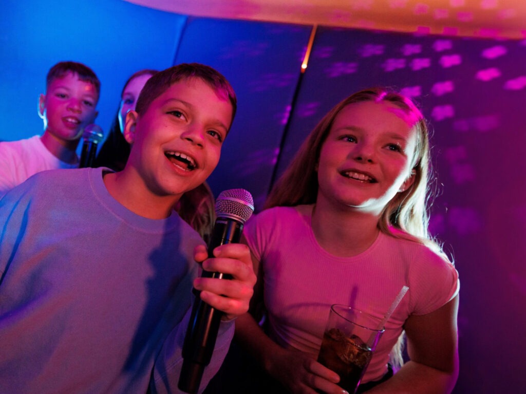 Just let us know at the time of booking and our DJ will be there with a catalog, monitors for lyrics, and up to 4 wireless mics for the kids to use.