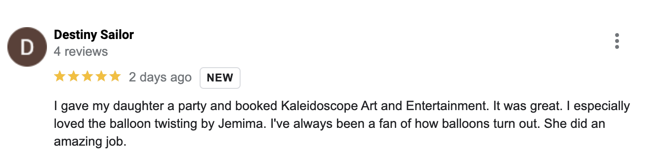 New Britain native Jem first started as a balloon twister with Kaleidoscope in 2022, but her adventure with us begins all the way back in 2015 as a communications intern. In 2015 she helped build our princess party sister company Princess Perfect and has freelanced with us as a photographer, content writer, and kids party entertainer ever since.
