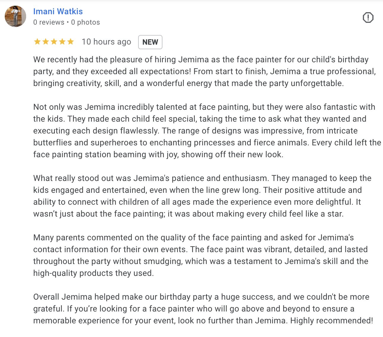 Over the past decade, not only has Jem finished her Master’s in International Business but she has launched her career in corporate communication Monday through Friday. And like many of our artists, she enjoys breaking her weekly routine to have fun and make kids smile at parties on weekends!