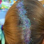 - Hair art – add hair tinsel and hair chalk to a glitter look for even more fun!