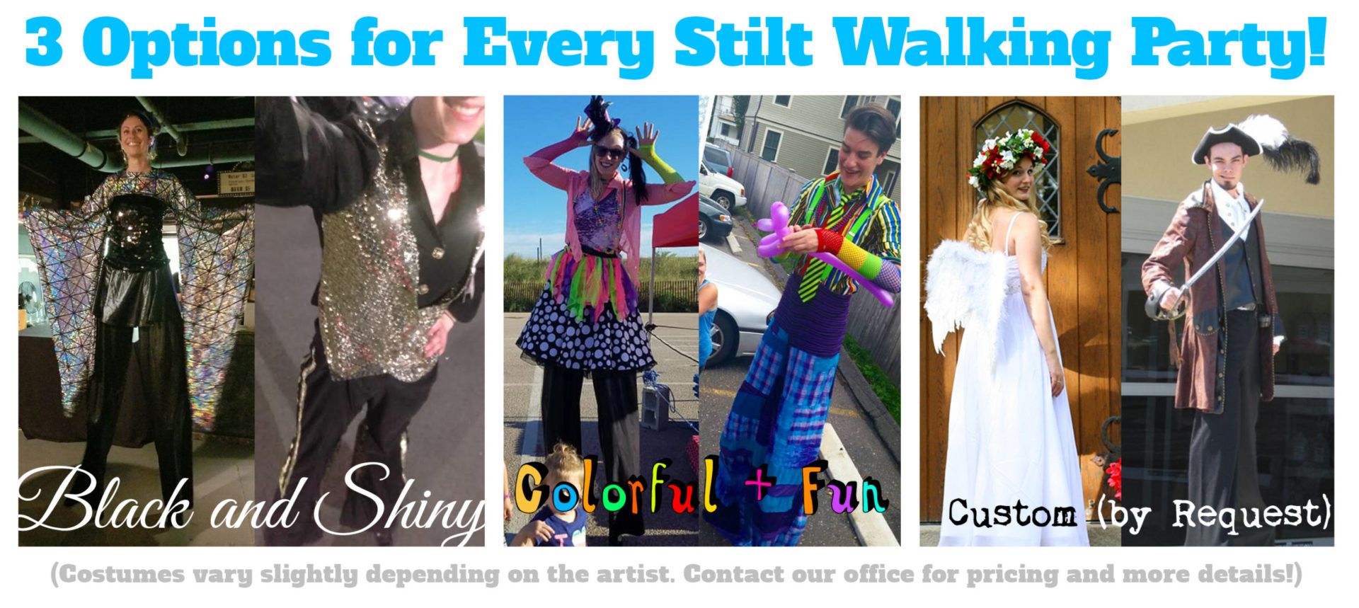 Stilt walkers are available in the following outfits: